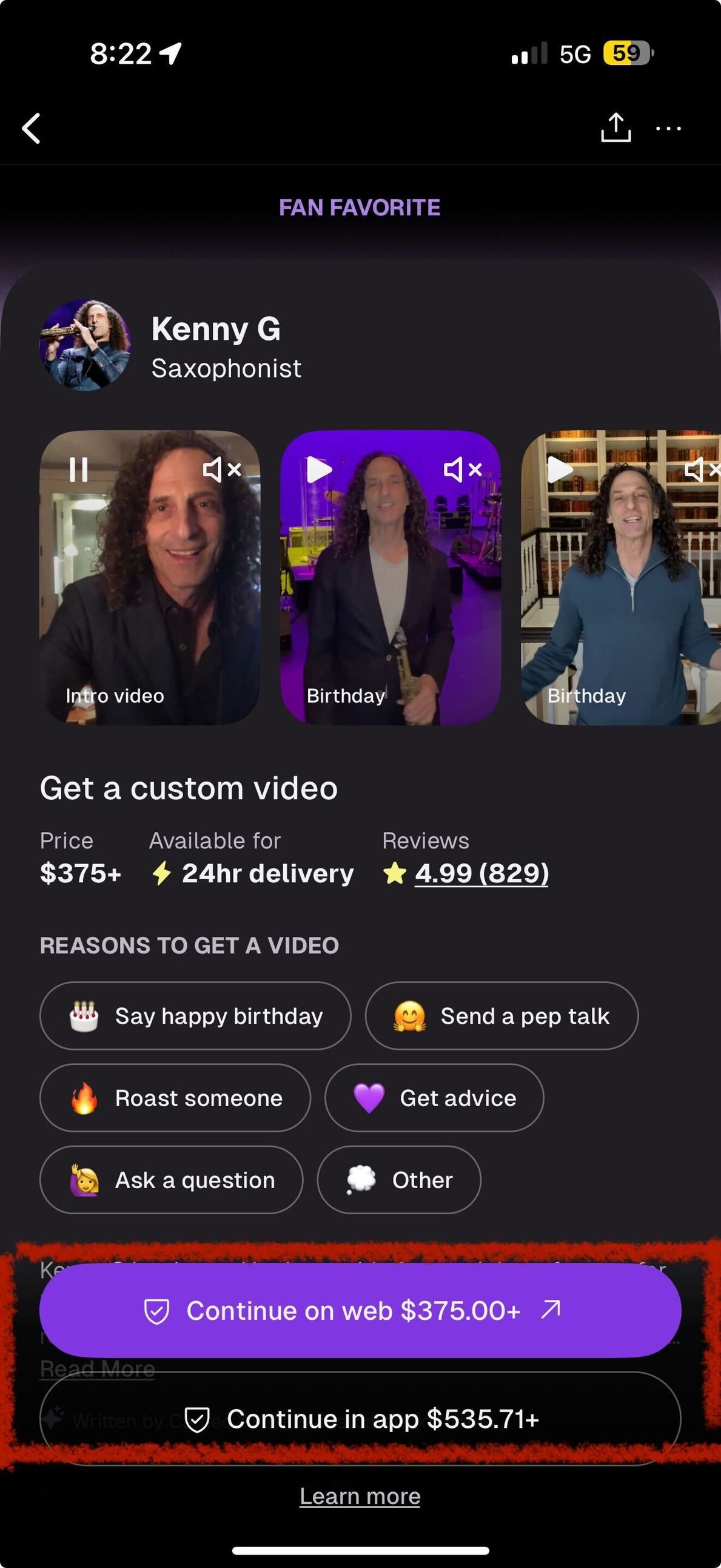 P.S. Due to the recent Epic Games vs Apple ruling we have been able to offer significantly lower prices (by nearly 30%) for our iOS customers. Check out the all new bookings experience in the Cameo app today!
